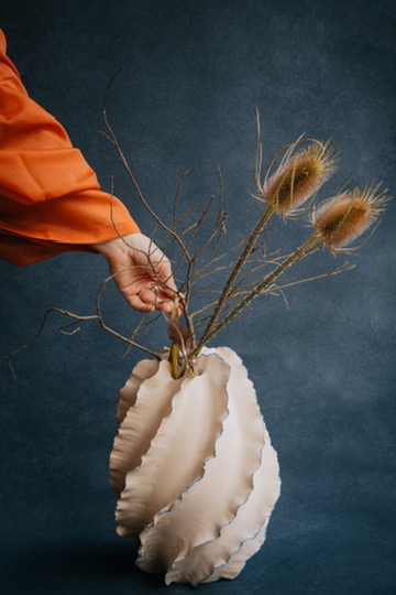 The soft, milky color brings nature’s elegance with delicate accents on the edges. As I crafted these vases by hand, I found inspiration in the beauty of sea corals.